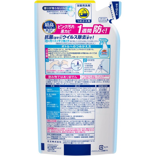 바스 매직클린 SUPER 거품 세정 향기가 남지 않는 리필 300ml 카오 > 욕실 클리너