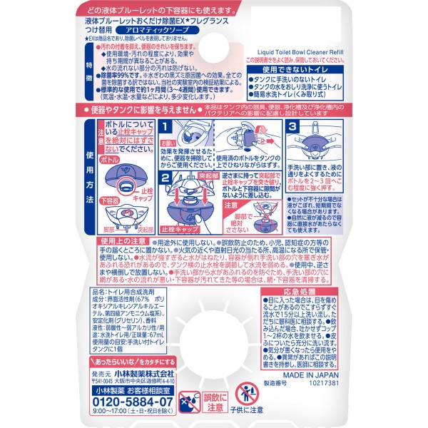 액체 블루렛 오쿠다케 제균 EX 프레그런스 교체용 아로마틱 소프 67ml 고바야시제약 > 변기 탱크용 액체
