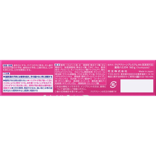 클리어클린 프리미엄 미백 160g 카오 > 충치 예방
