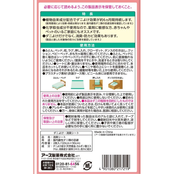 방충력 진드기 방지 대형 시트 진드기 방지 시트 대형 2매 아스제약 > 기타