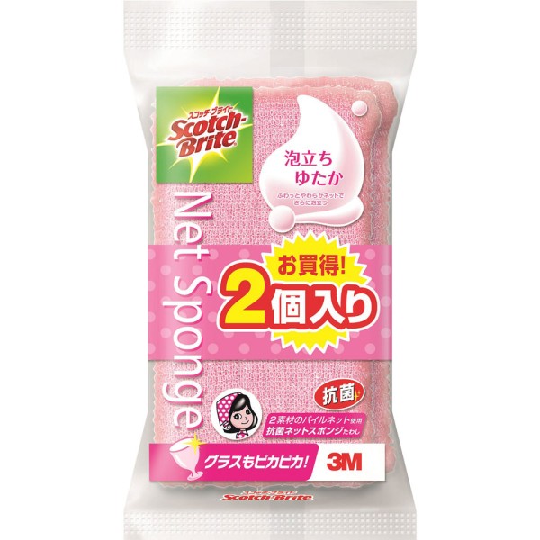 스카치브라이트 3M 풍성한 거품 네트 스폰지 핑크 2개입 쓰리엠 재팬 > 스펀지 (소프트)