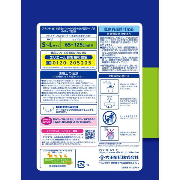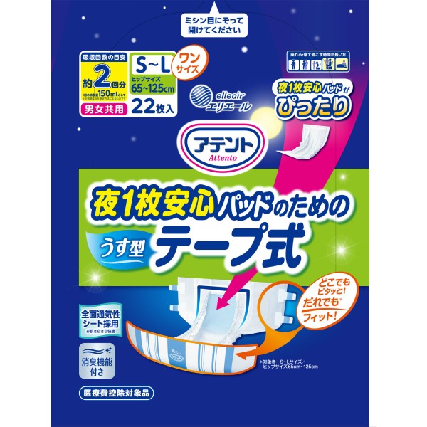 아텐토 밤 1매 안심 패드를 위한 얇은 테이프 S~L 22매 다이오제지 > 테이프 고정 타입