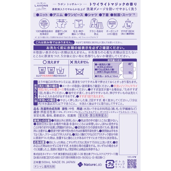 라본 투더문 샬레본 섬세한 의류 세제 트와일라잇 매직 500ml 네이처 라보 > 섬세의류용