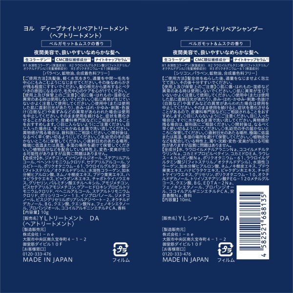 욜 딥 나이트 리페어 샴푸&트리트먼트 2연 사셰 10ml×10g I-ne