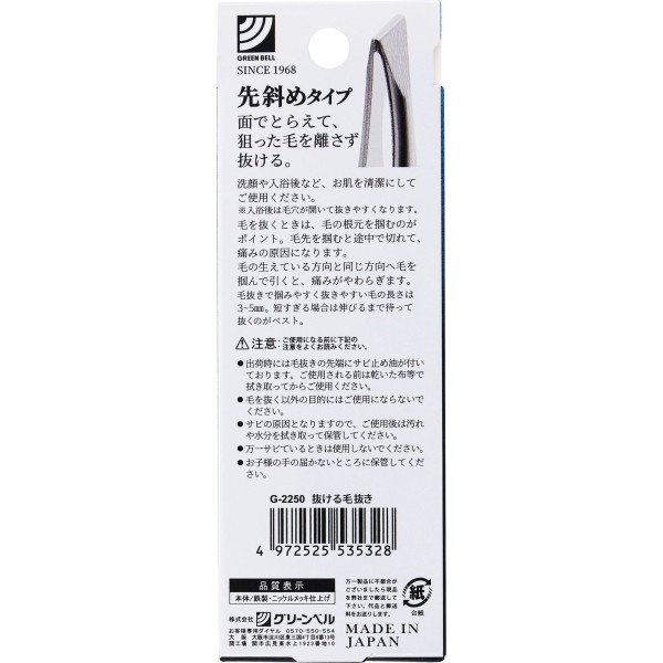 빠지는 족집게 G2250 1개입 그린벨 > 핀셋·족집게