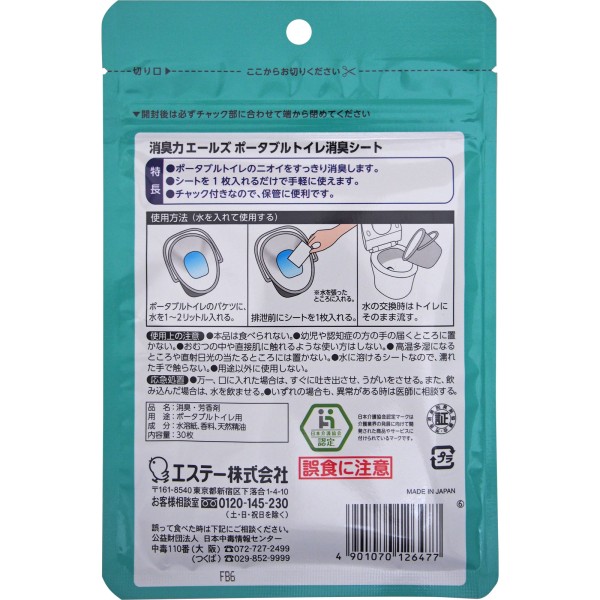 에얼스 소취력 포터블 화장실 소취 시트 30매 에스테 > 탈취제