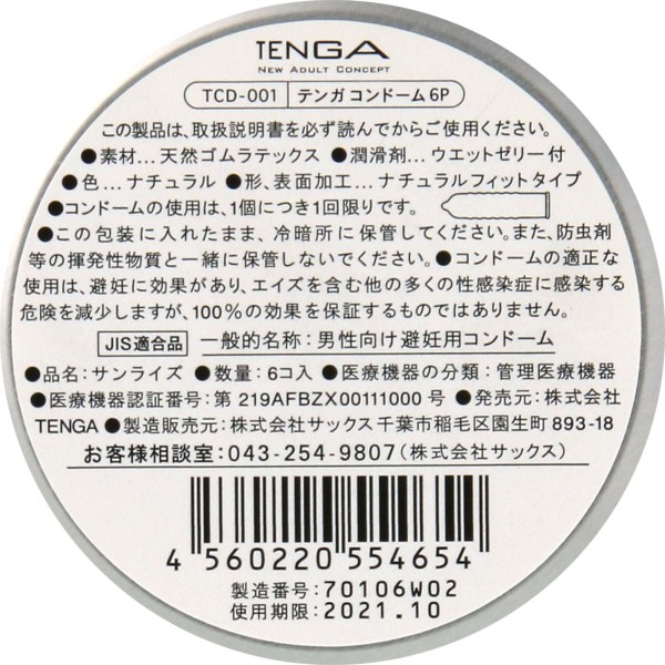 텐가 콘돔 6P 뎅가 > 1개 팩