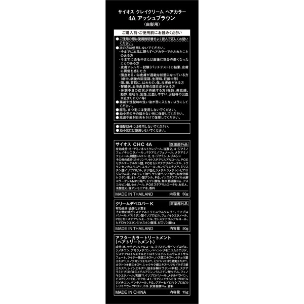 사이오스 클레이 크림 헤어컬러 4A 애쉬 브라운 50g+50g 헨켈 재팬 > 백발용 크림