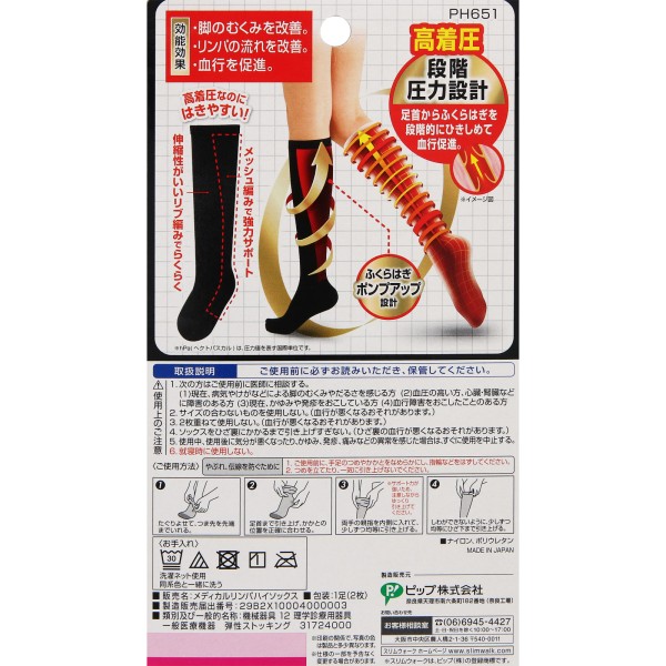 슬림 워크 메디컬 림프 하이 소크스 SM 핍후지모토 > 기능성 양말 실외 사용