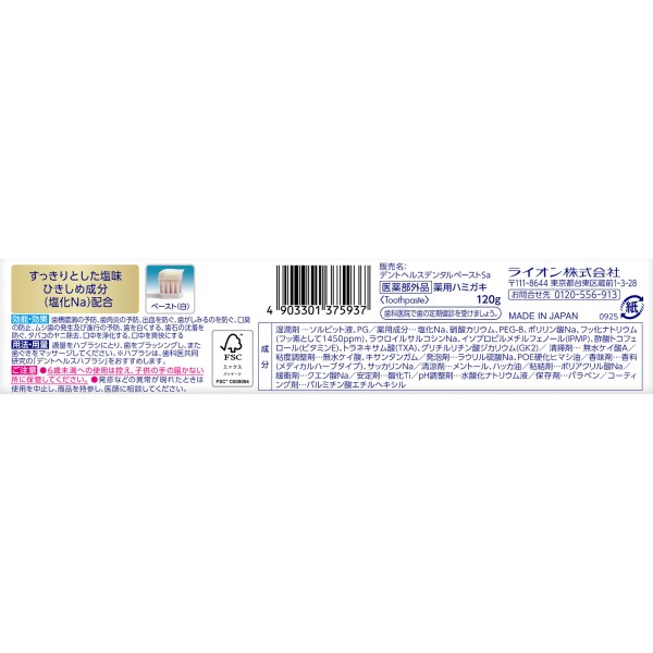 덴트 헬스 약용 치약 DX 프리미엄 120g 라이온 > 치주병