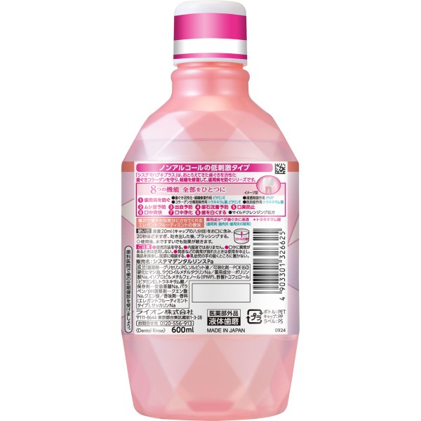 시스테마 잇몸 플러스 프리미엄 덴탈 린스 엘레강트 프루티 민트 무알코올 마우스 워시 600ml 라이온 > 치주병 예방