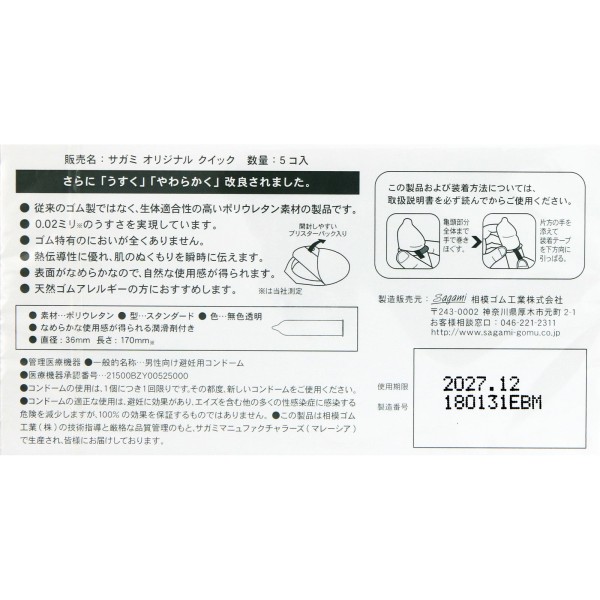 사가미 오리지널 002 퀵 5개입 사가미 고무공업 > 1개 팩
