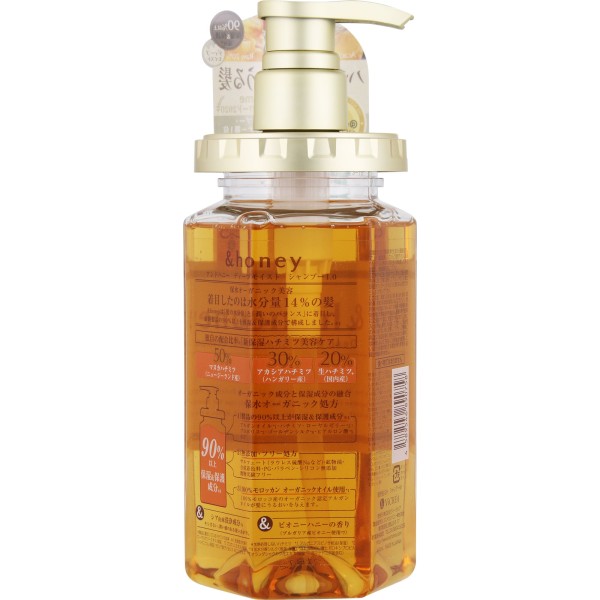 水分量14%の髪に着目した、ハチミツ美容シャンプー。独自のハチミツ配合比率※1でうるおいツヤめく。