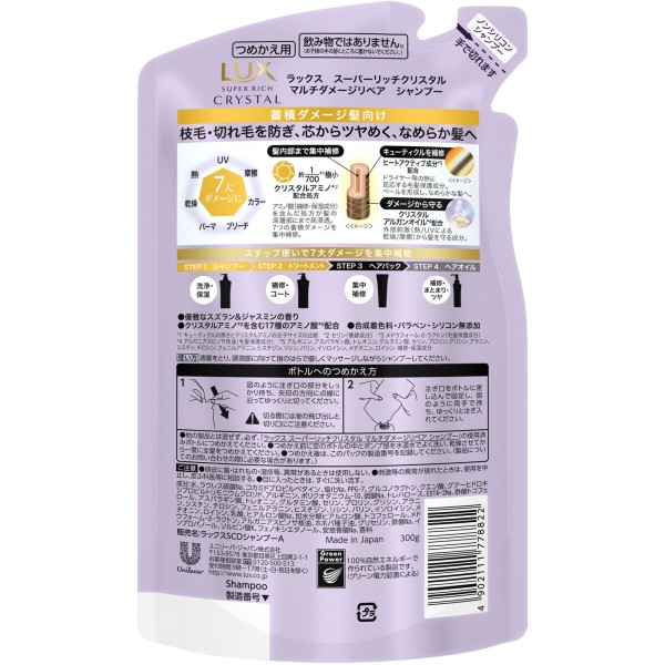 럭스 슈퍼 리치 크리스털 멀티 대미지 리페어 샴푸 리필용 300g 유니레버 재팬 > 기타