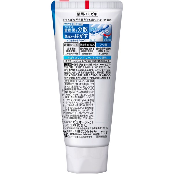 약용 퓨오라 치약 클린 민트 115g 카오 > 충치 예방