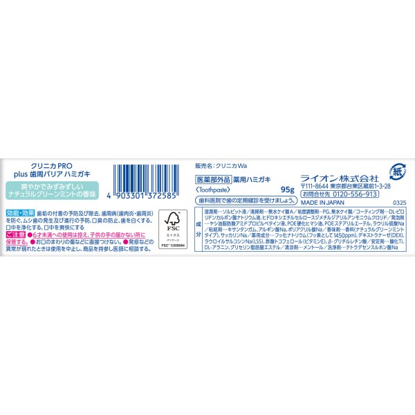 클리니카 PRO plus 치주 배리어 치약 95g 라이온 > 충치 예방