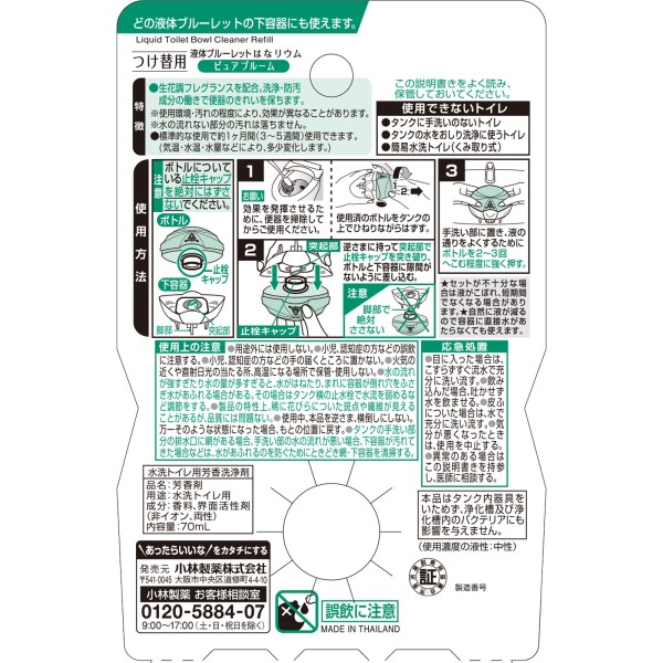 블루렛 하나리움 교체 퓨어 블룸 70ml 고바야시제약 > 변기 탱크용 액체