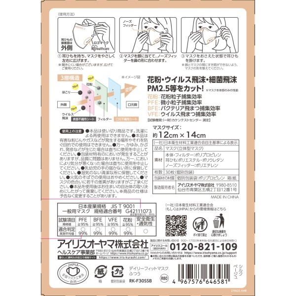 DAIRYFIT MASK 입체 보통 실크 베이지 30매 아이리스 오야마 > 대용량