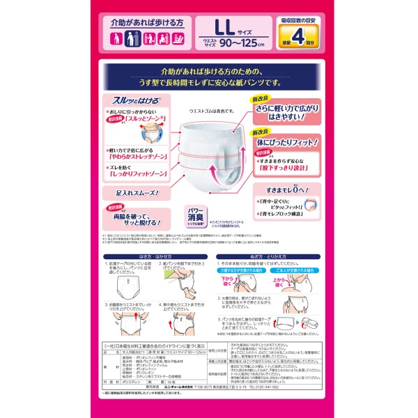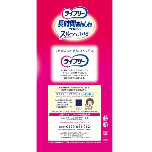 라이프리 장시간 안심 얇은 팬츠 LL 16매 유니참 > 슬림형