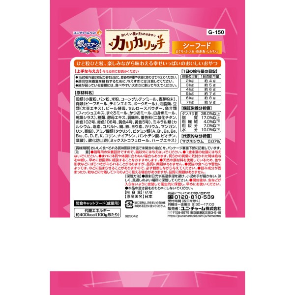 은수저 맛있는 얼굴이 보이는 간식 바삭바삭 씨푸드 120g 유니참 펫케어 > 드라이 (유묘·성묘용)