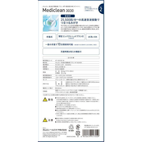 오므론 음파식 전동 칫솔 HT-B3030-W 오므론헬스케어