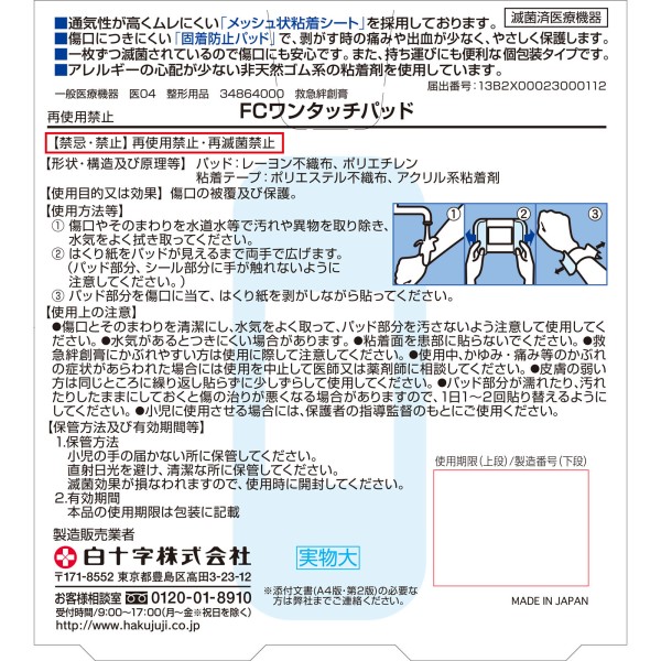 패밀리 케어 원터치 패드 S 대용량 40매 백십자 > 멸균 패드