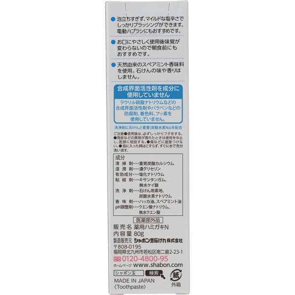 ●ラウリル硫酸ナトリウムなどの合成界面活性剤やパラベンなどの防腐剤、着色料、フッ素を使用していません。