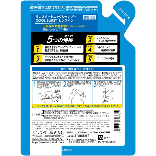 썬스타 토닉 샴푸 COOL BURST 린스인 리필용 340ml 썬스타 > 선스타 토닉