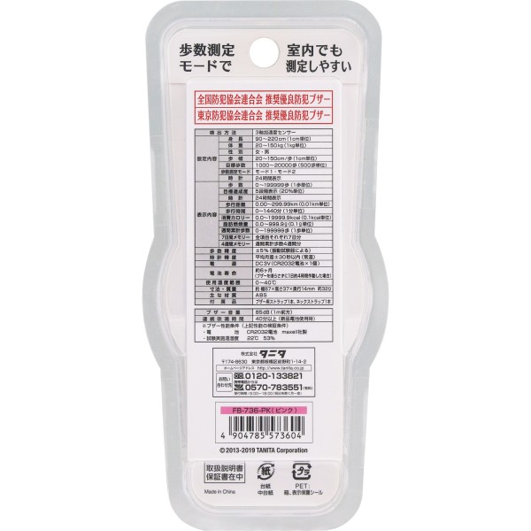 3D 센서 탑재 만보계 [방범 부저 포함] FB-736 핑크 타니타 > 만보계