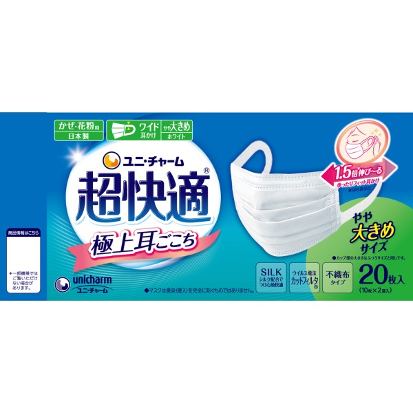 초쾌적 마스크 플리츠 타입 약간 큰 사이즈 20매 유니참 > 대용량
