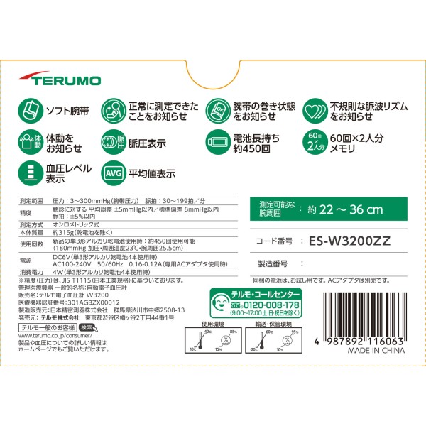 전자 혈압계 ES-W3200ZZ 테루모 > 상완식