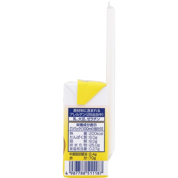 1パック100mlで200Kcal・たんぱく質8g。少量高カロリーの栄養補助飲料です。多くの医療機関・介護施設でご使用いただいております。