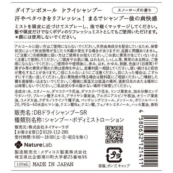 다이안 보뇌르 드라이 샴푸 스노우 로즈 향 120ml 네이처 라보 > 기타 드라이 샴푸