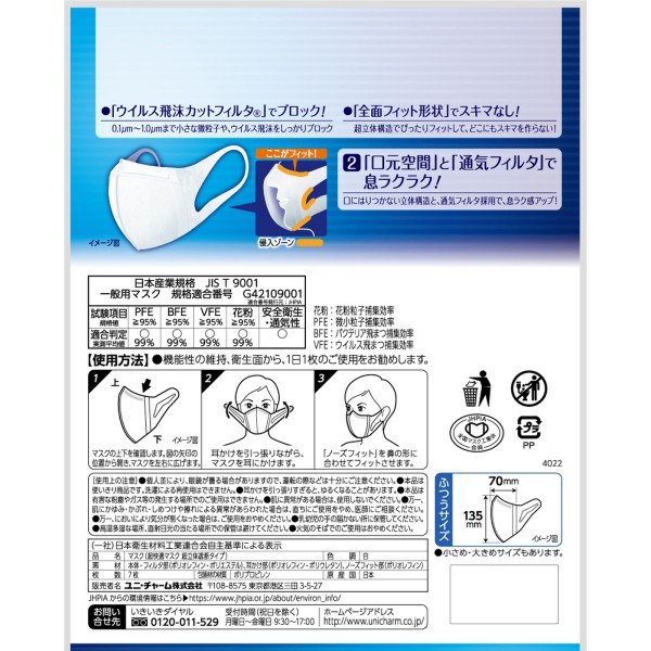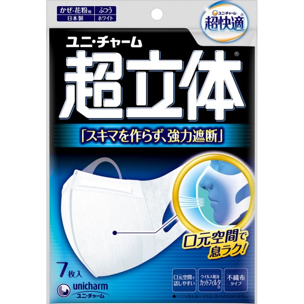 초 입체 마스크 보통 7매 유니참 > 입체 타입