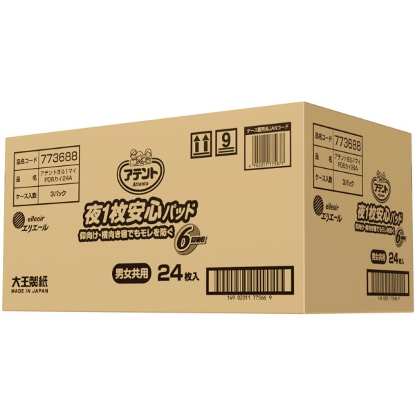 아텐토 밤 1매 안심 패드 6회 흡수 케이스 24매×3 다이오제지
