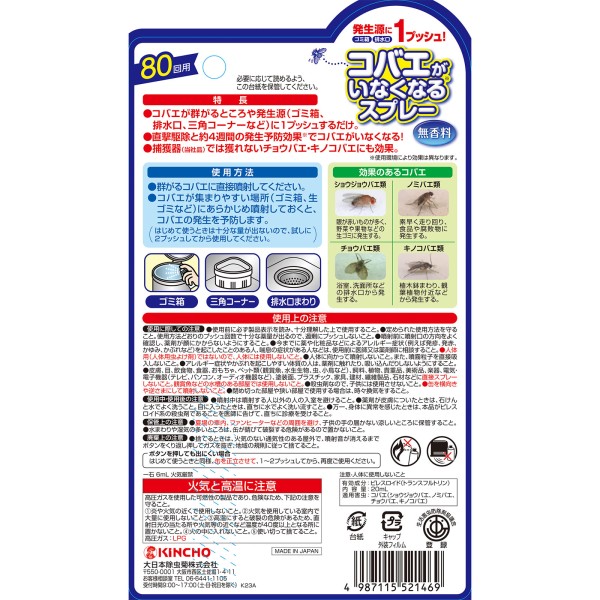초파리가 없어지는 스프레이 80회용 (구제·발생 예방) 20ml 다이니혼죠추기쿠 > 스프레이