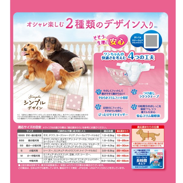 매너 웨어 여자 아이용 S사이즈 심플 디자인 36매 유니참 펫케어 > 생리용