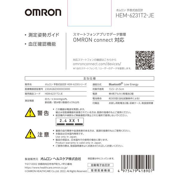 오므론 손목식 혈압계 HEM-6231T2-J 오므론헬스케어