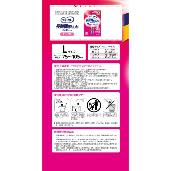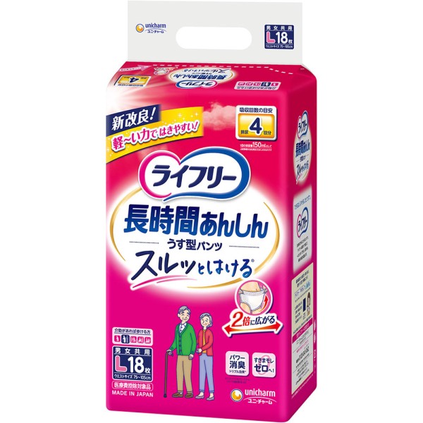 라이프리 장시간 안심 얇은 팬츠 L 18매 유니참 > 슬림형