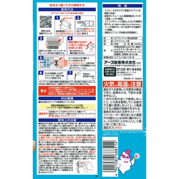 ●スプレーするだけでエアコン(クーラー)を簡単洗浄。