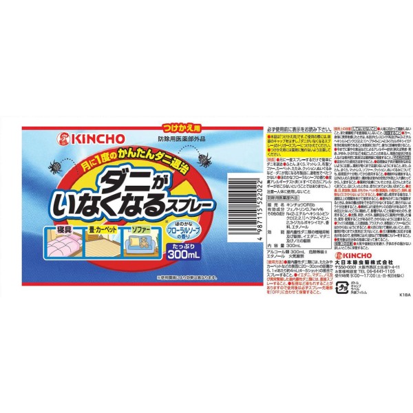 진드기가 없어지는 스프레이 구제·방지 비누 향 (다다미·침구·소파에) 교체 300ml 다이니혼죠추기쿠 > 기타