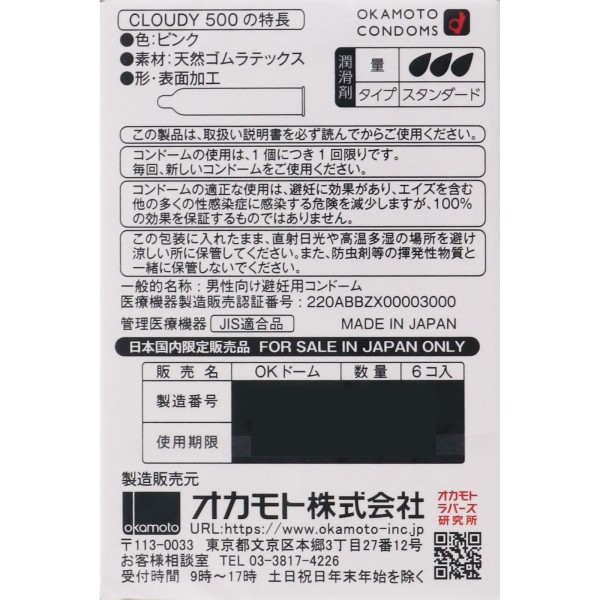CLOUDY 콘돔 6개 오카모토 > 1개 팩