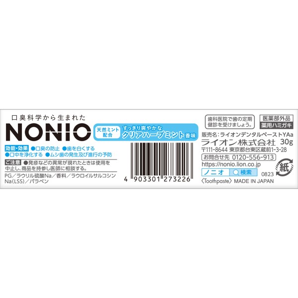 NONIO (노니오) 치약 클리어 허브 민트 치약 30g 라이온 > 구취 예방