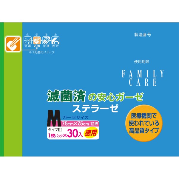 패밀리 케어 스텔라제 M 30매 백십자 > 거즈