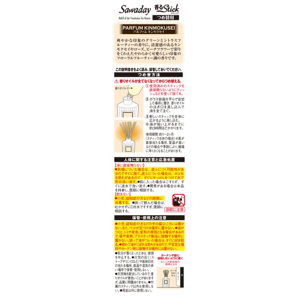 Sawyday 향기나는 스틱 리필용 파르팡 금목서 70ml 고바야시제약 > 스틱
