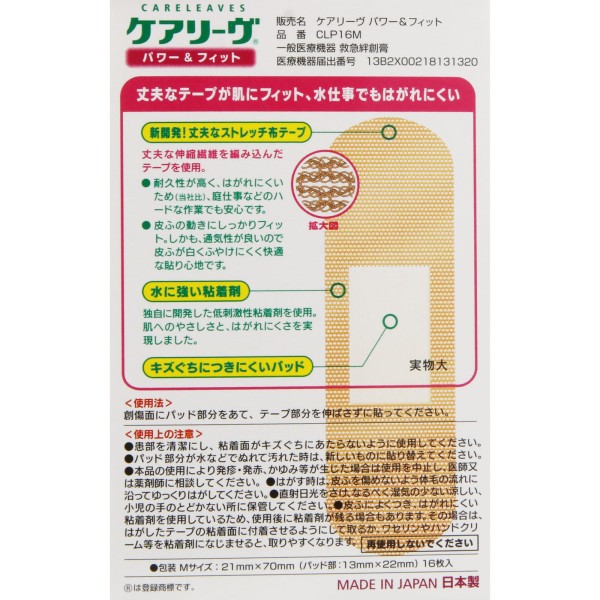 케어리브 파워&핏 M사이즈 M사이즈 16매 니치반 > 구급 밴드(스탠더드 타입)