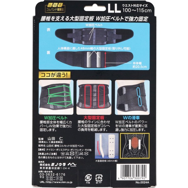 야마다식 요추 코르셋 W 가압 벨트 LL 미노우라 코퍼레이션 > 허리