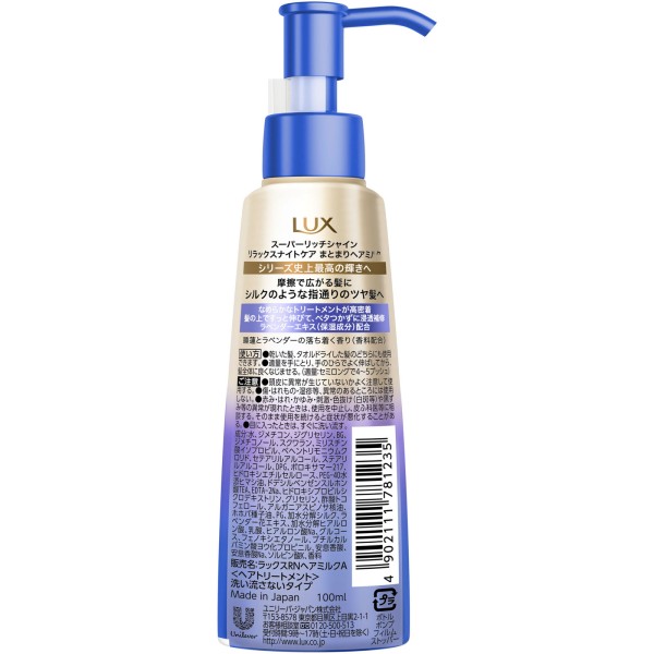 럭스 슈퍼 리치 샤인 릴렉스 나이트 케어 정돈 헤어밀크 100ml 유니레버 재팬 > 럭스
