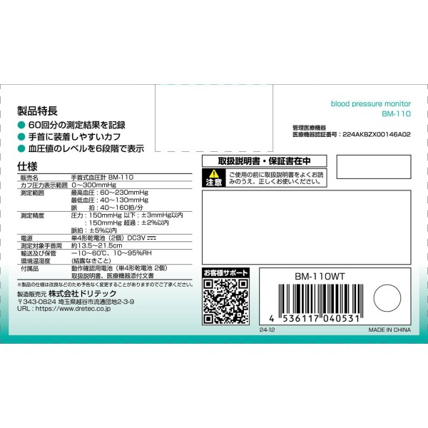손목식 혈압계 화이트 BM-110 도리테크 > 손목식