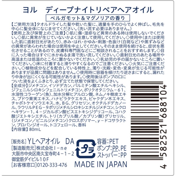 욜 딥 나이트 리페어 헤어오일 80ml I-ne > YOLU